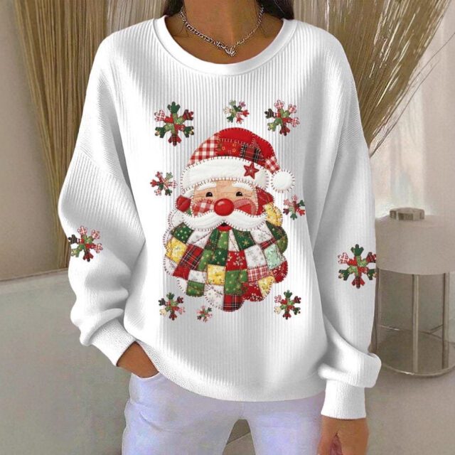 Womens Printed Crew Neck Long Sleeve Top