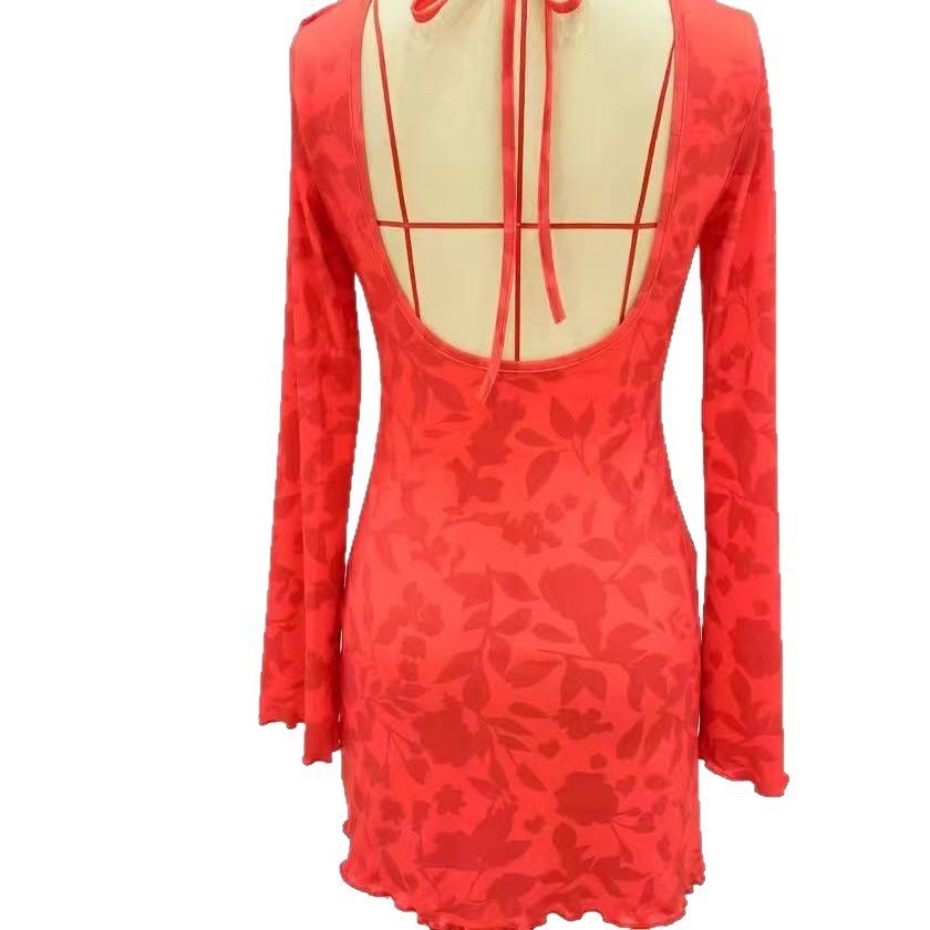 Casual, Versatile Waist-cinching Dress With A Red Floral Print