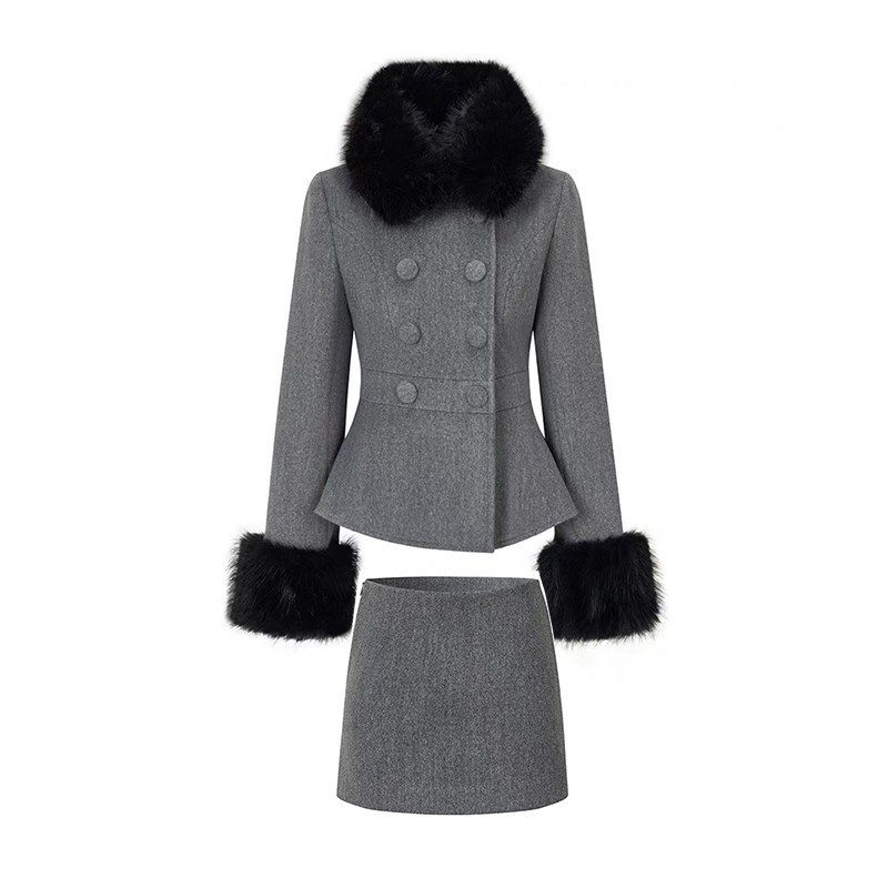 Chic Tweed Two-Piece Set For Socialites Sweet Defined-Waistline Design In The Style For Rich-Daughter Style Looks