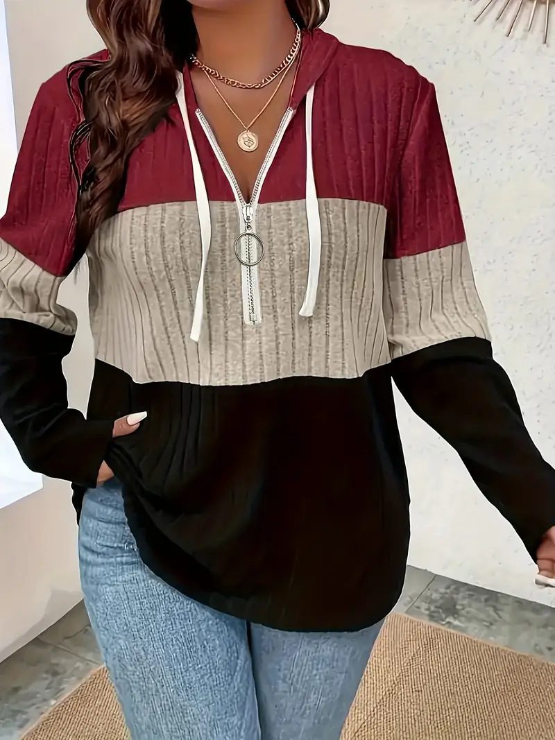 The Color-blocked Oversized Hoodie is a relaxed and stylish pullover designed for comfort and casual sophistication. This Color-blocked Oversized Hoodie features a half-zip front, drawstring hood, and bold contrasting panels that add modern detail. As a result, it works well for everyday wear, office-casual looks, or light outdoor use.