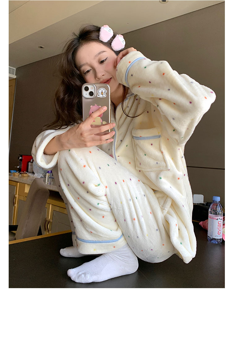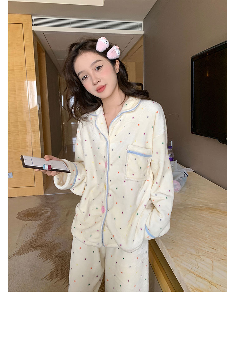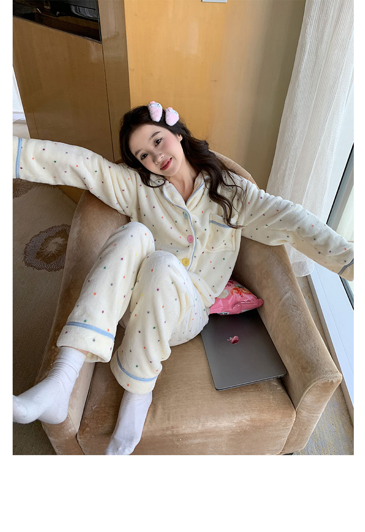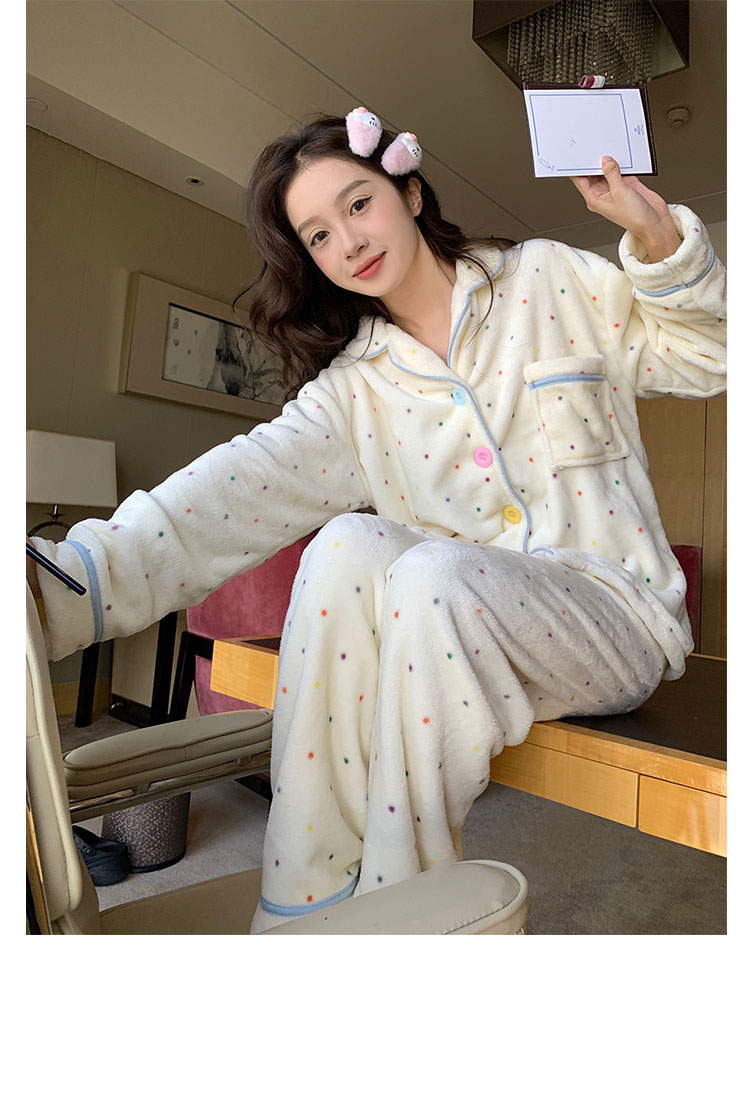 Coral Fleece Soft Skin-friendly Homewear Fleece-lined Thick Warm Pajamas Suit Female Winter