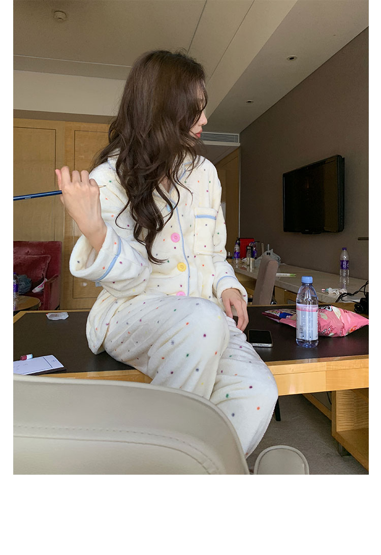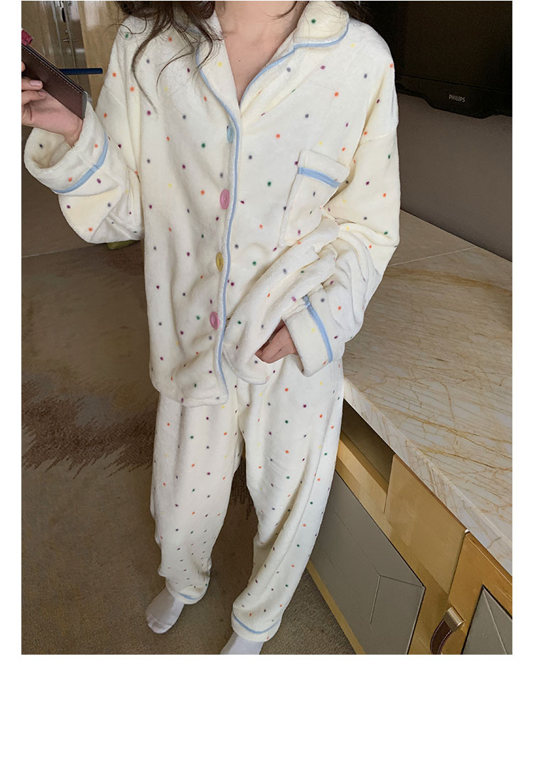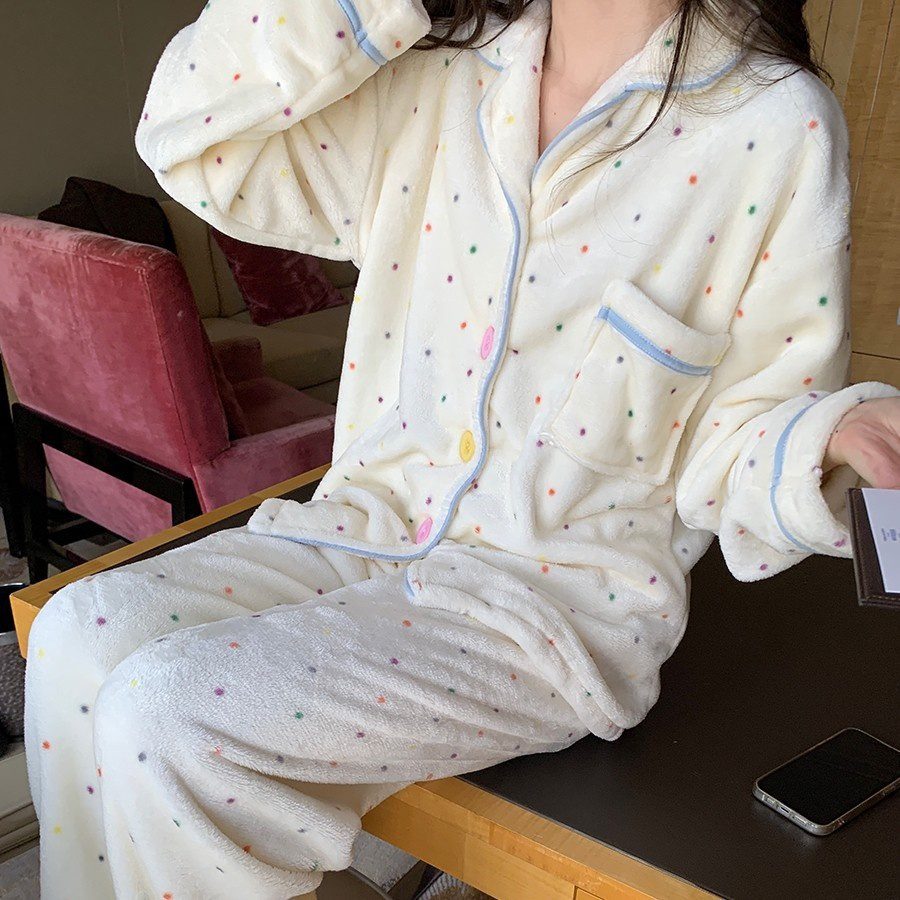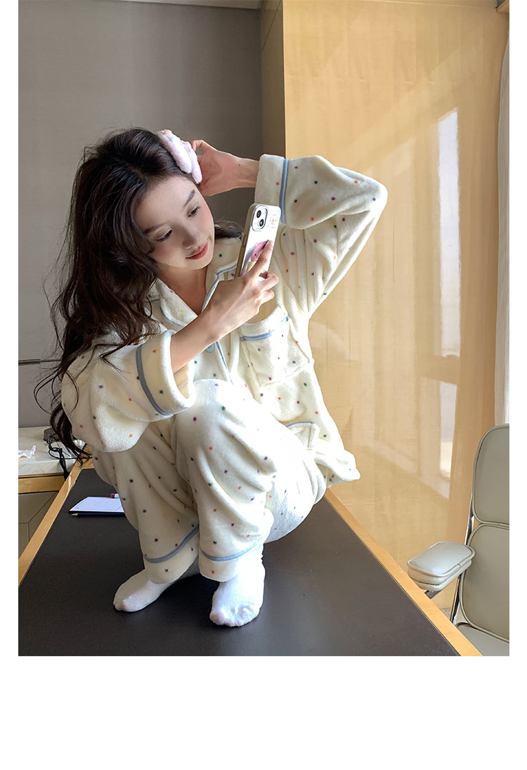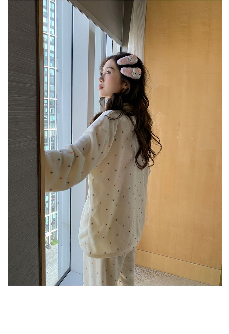 Coral Fleece Soft Skin-friendly Homewear Fleece-lined Thick Warm Pajamas Suit Female Winter