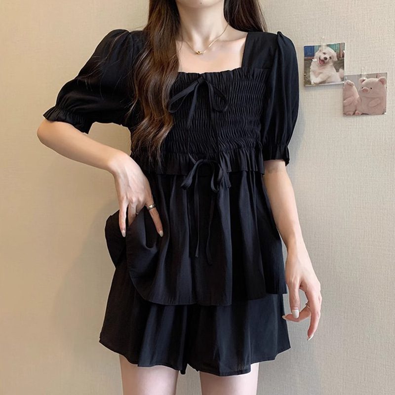 Be the first to review “Elastic Waist Shirt And Shorts Casual Two-piece Set”