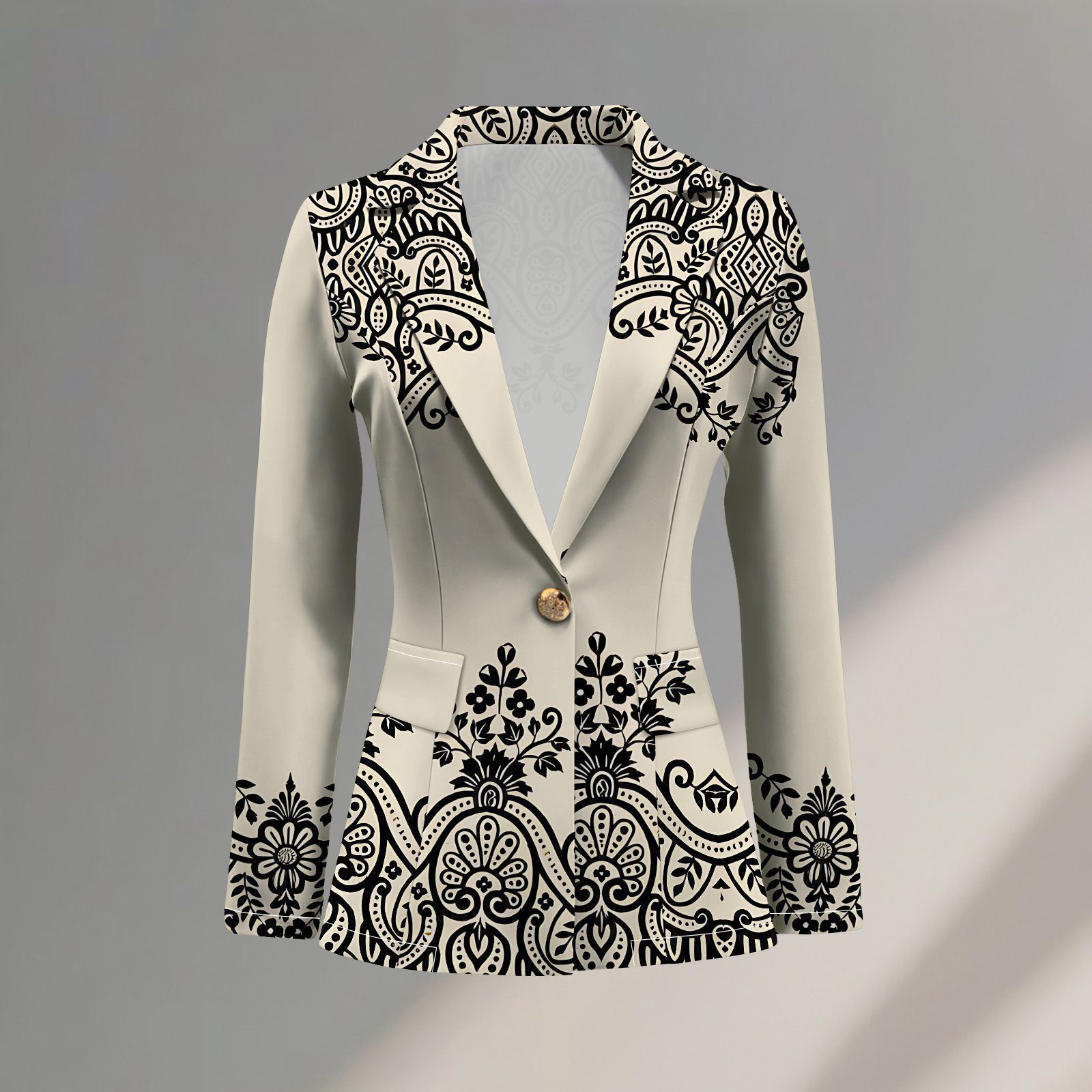 Elegant And Sophisticated Printed Knit Womens Jacket With A Lapel Neckline