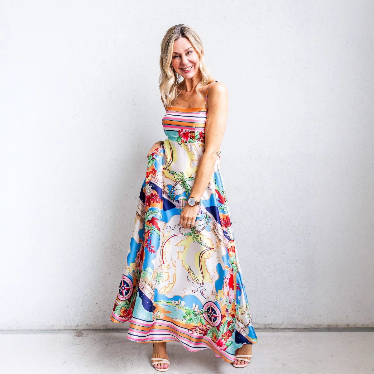 Women’s High Waist Print Vacation Style Large Swing Suspender Dress