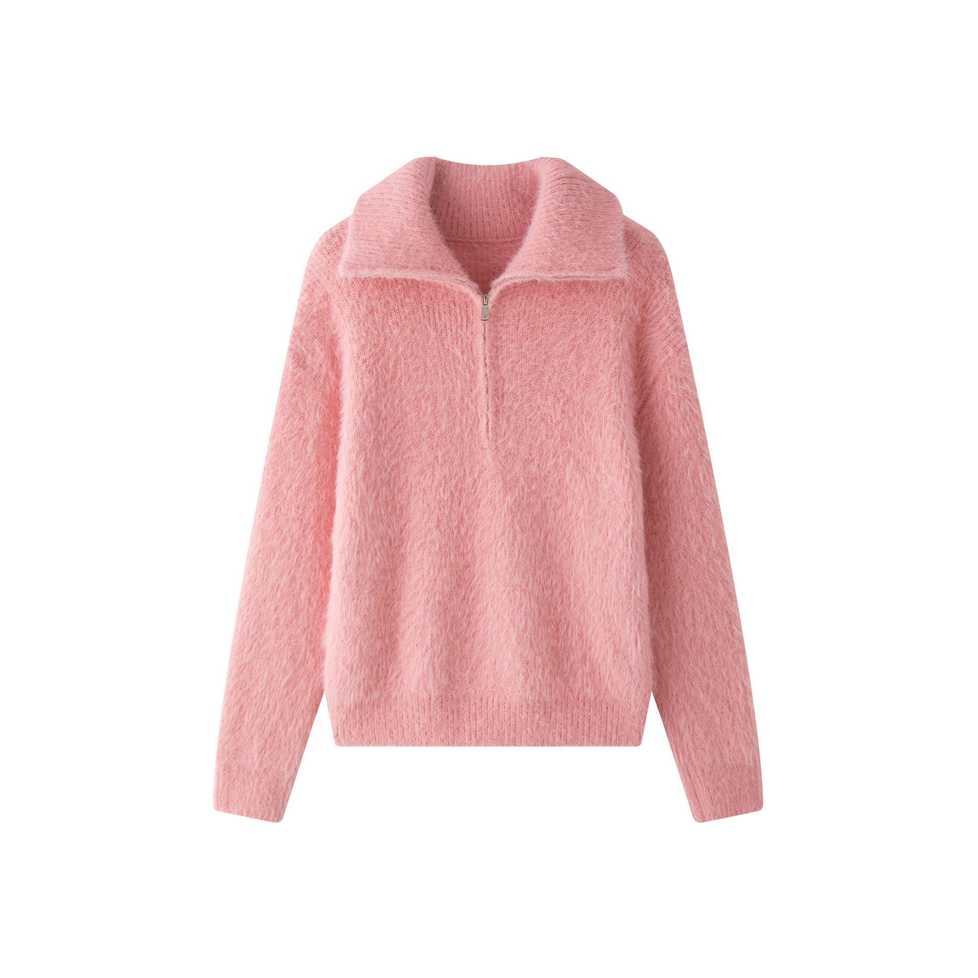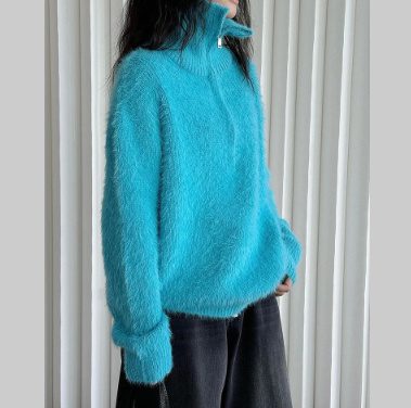 Korean-style Relaxed Faux Mink High-neck Sweater Top