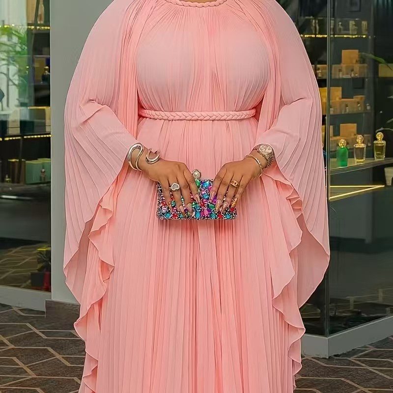 New High-end Pleated, Tie-waist, Oversized Maxi Dress For Women