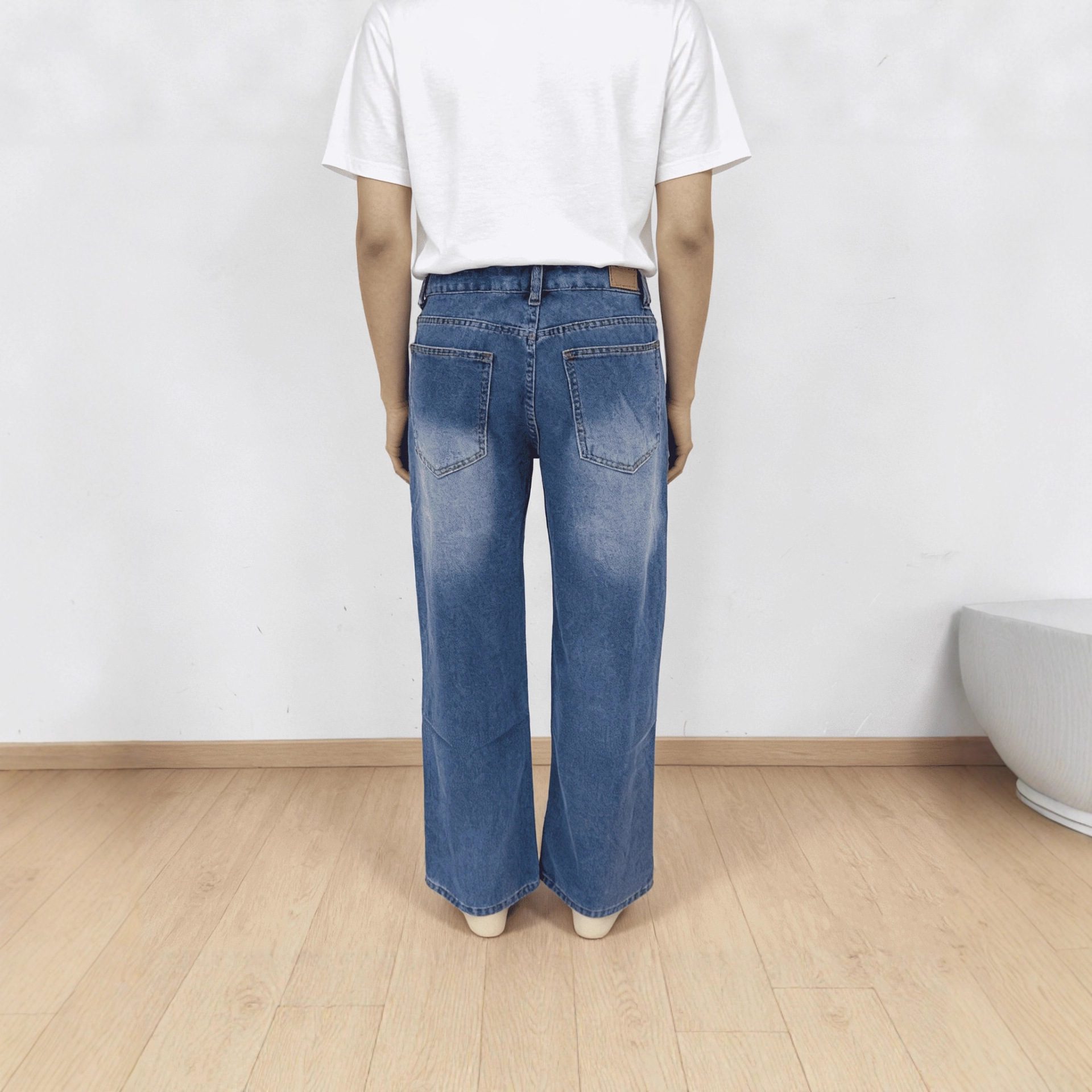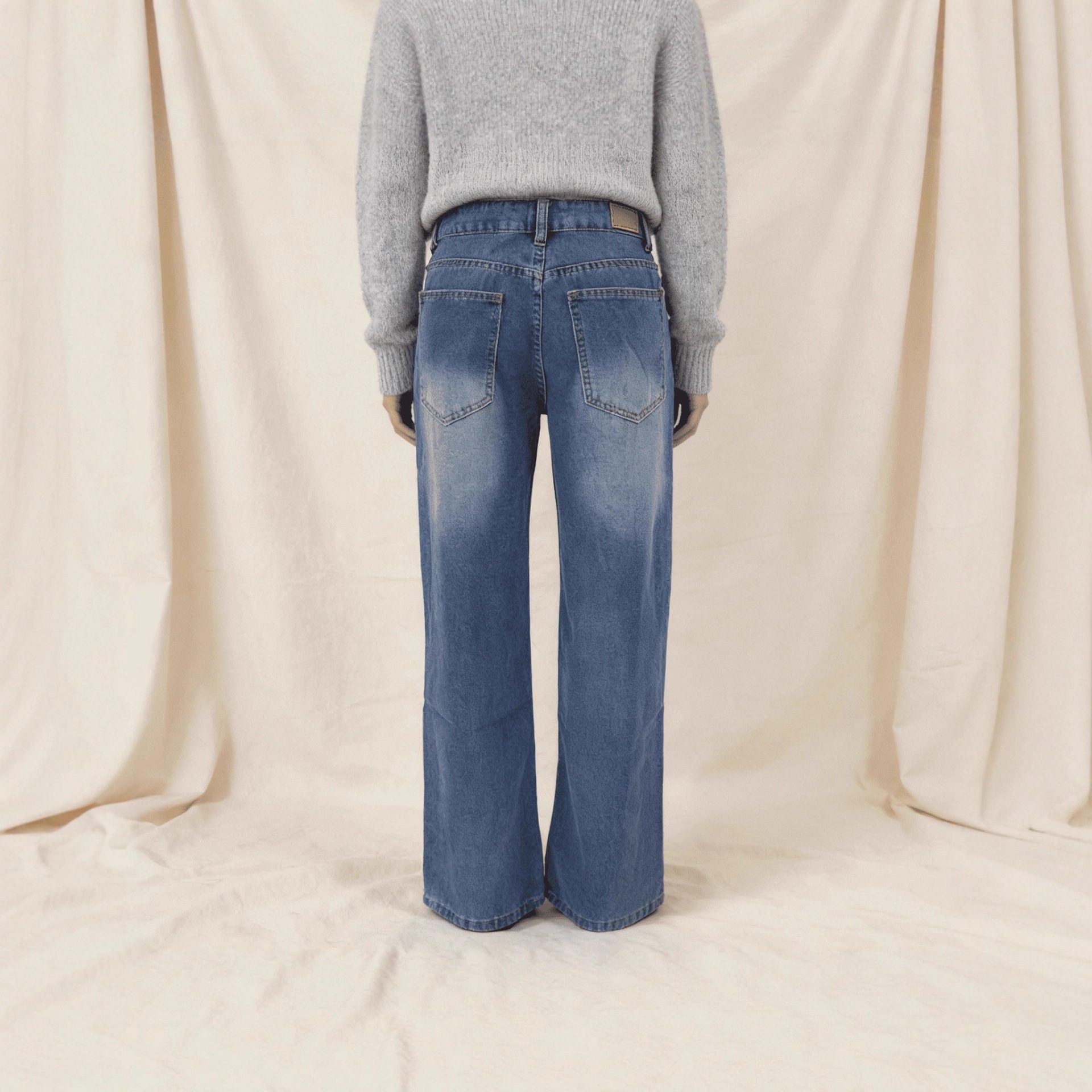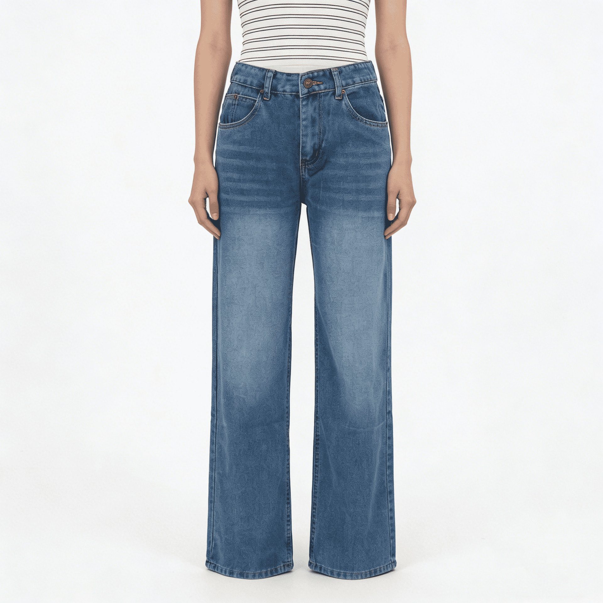 Retro Washed Mopping Pants High-Waisted Womens Slimming Washed Denim Jeans