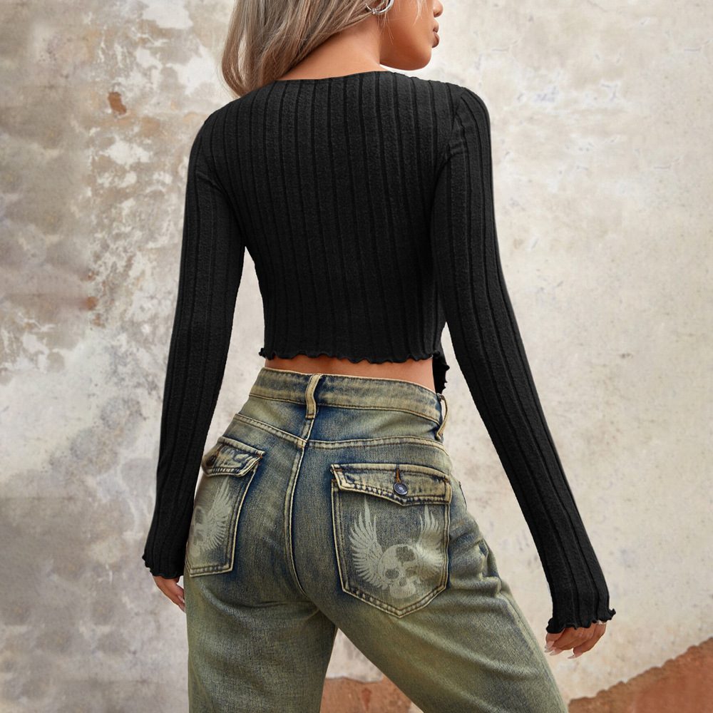 European And American Unique Design Sense Niche T-shirt Autumn And Winter New Sexy Cropped Short Top