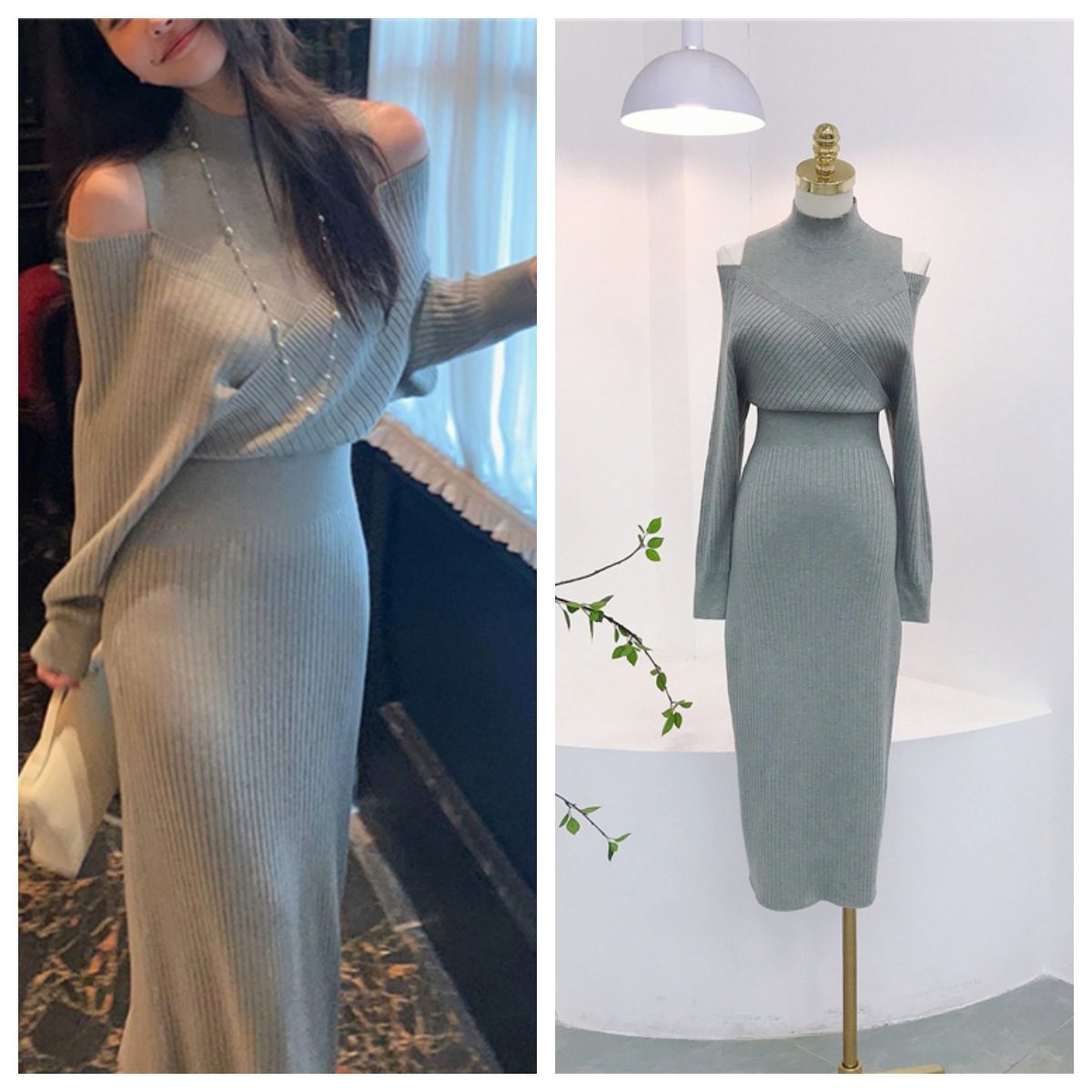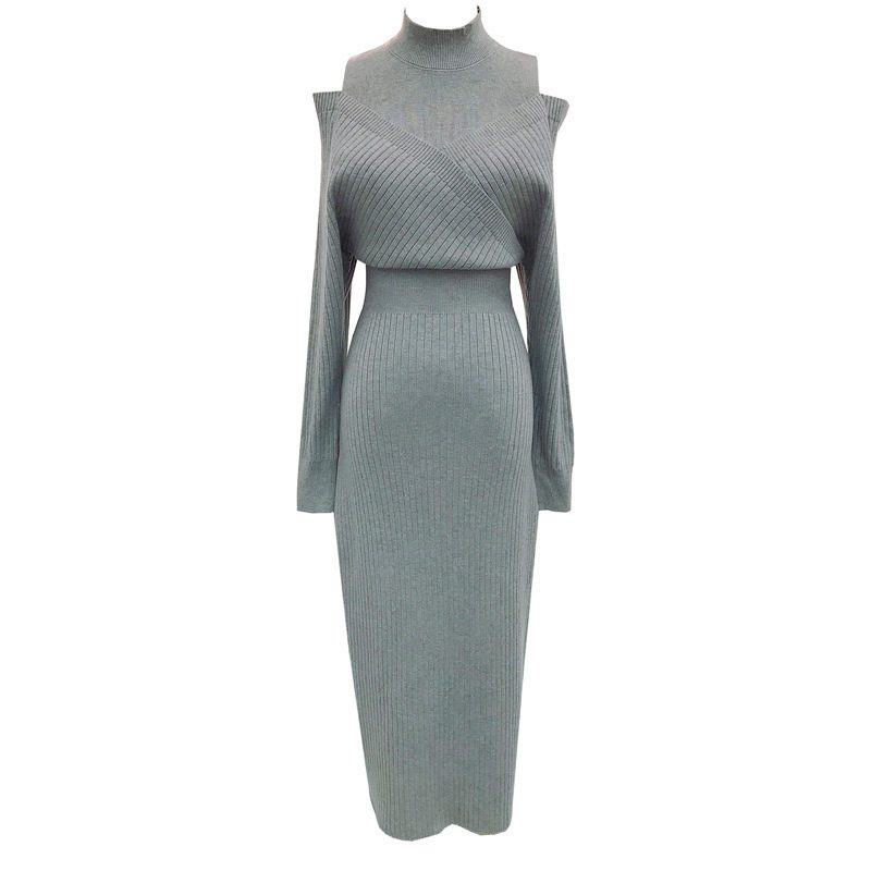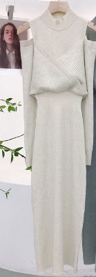 Trendy Elements: Solid color, slit, cinched waist, off-the-shoulder, patchwork