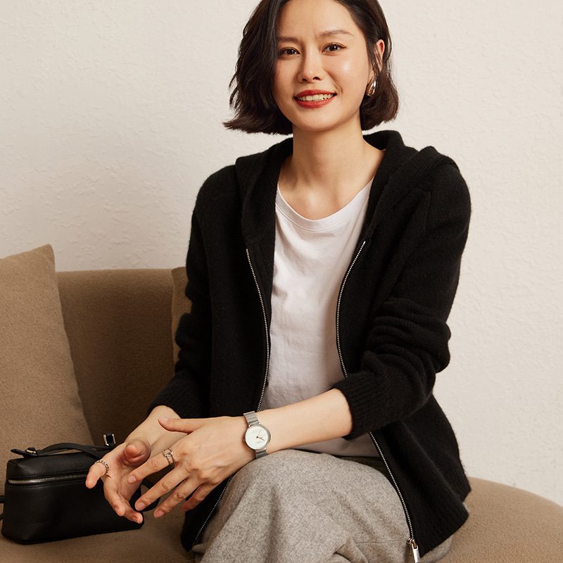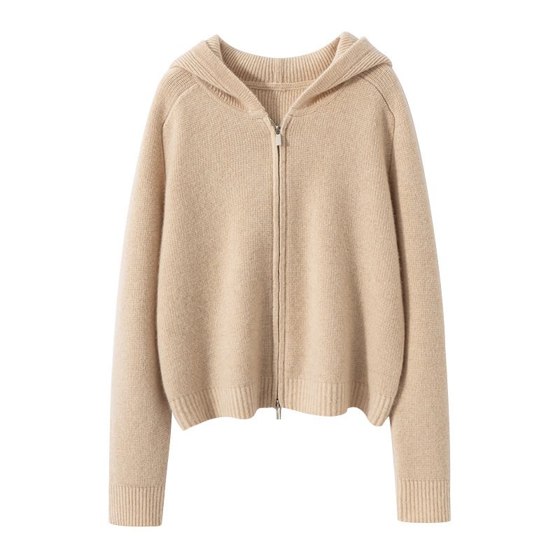Women’s Cashmere Hooded Zip Cardigan Sweater
