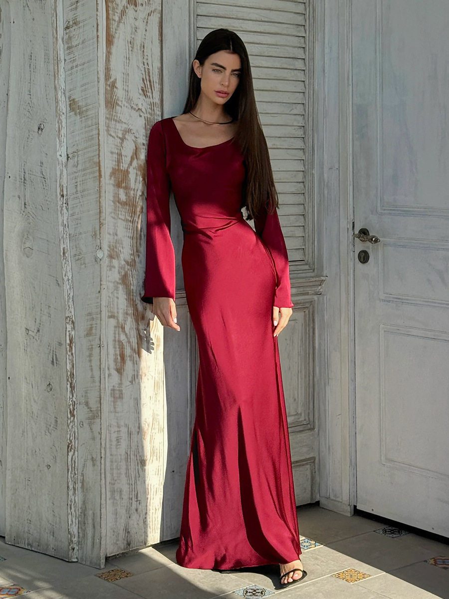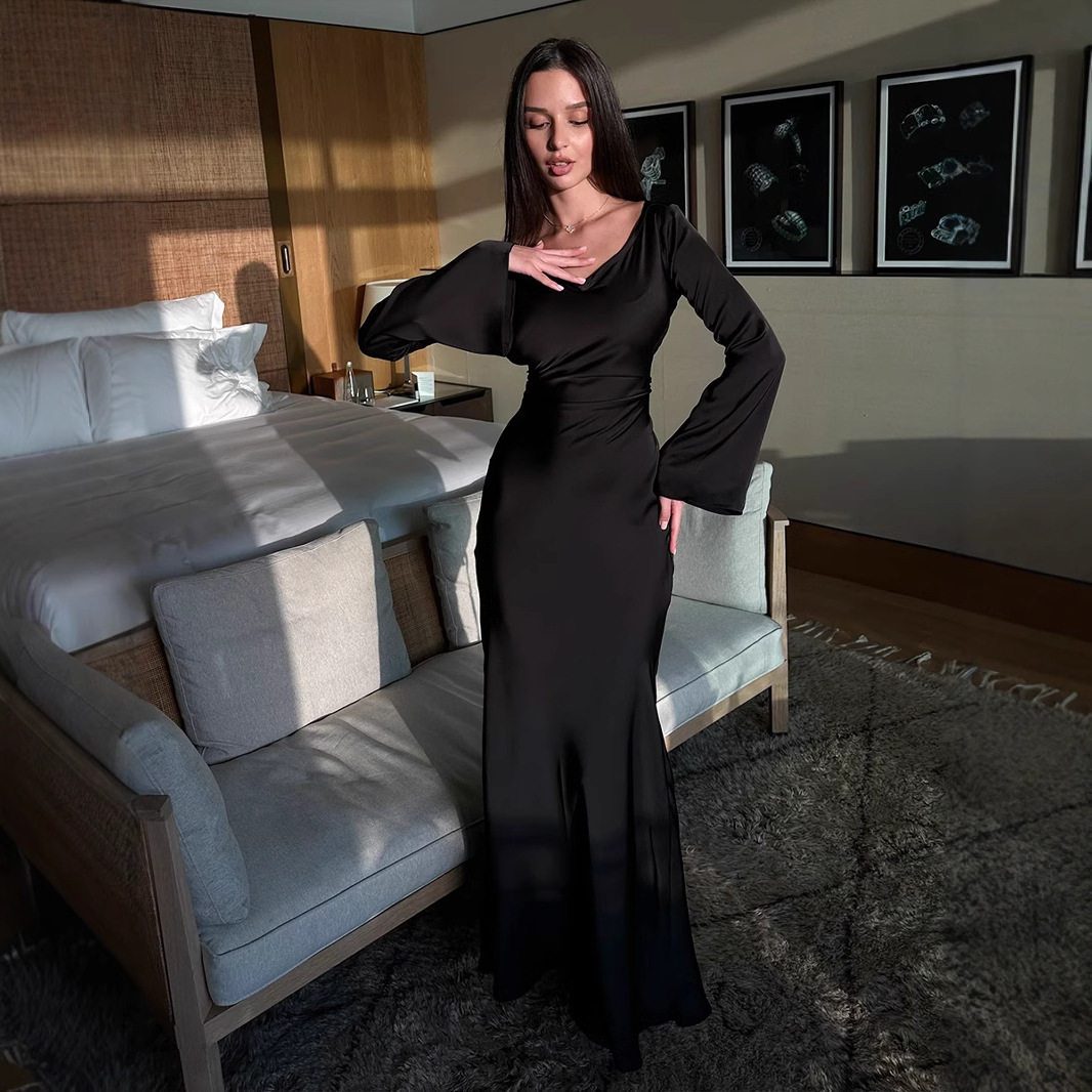 Womens Long-Sleeve Lace-Up Chinese-Style Elegant And Effortless Waist-Cinching Dress