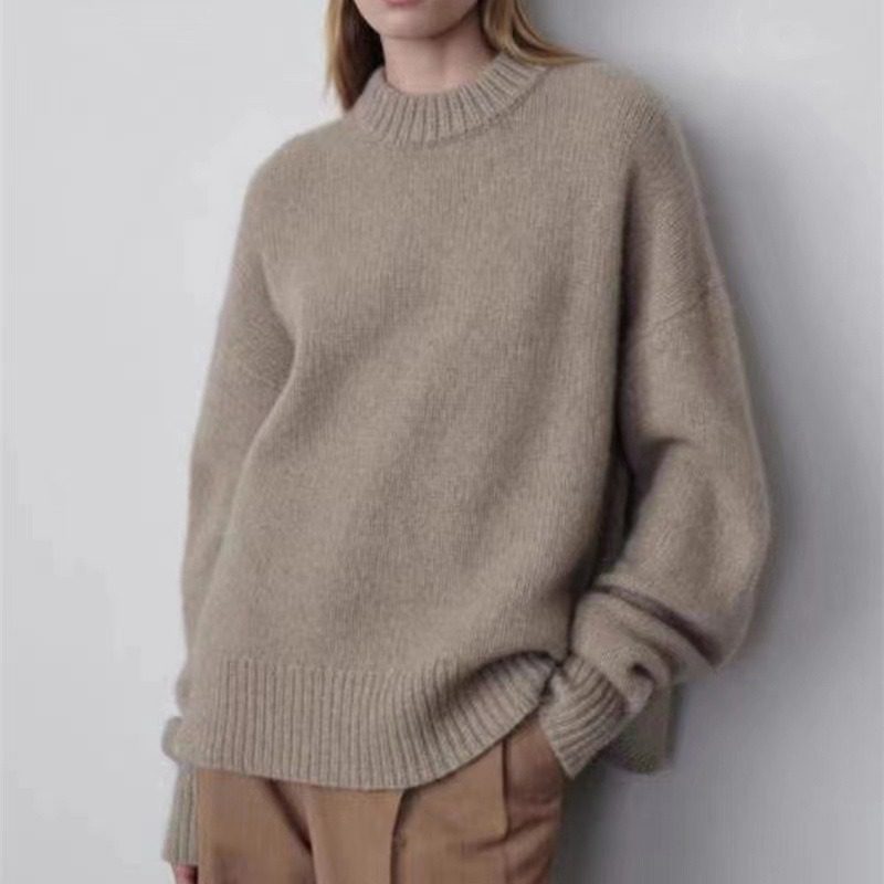 Womens Plus-Size Loose Crew-Neck Pullover Sweater
