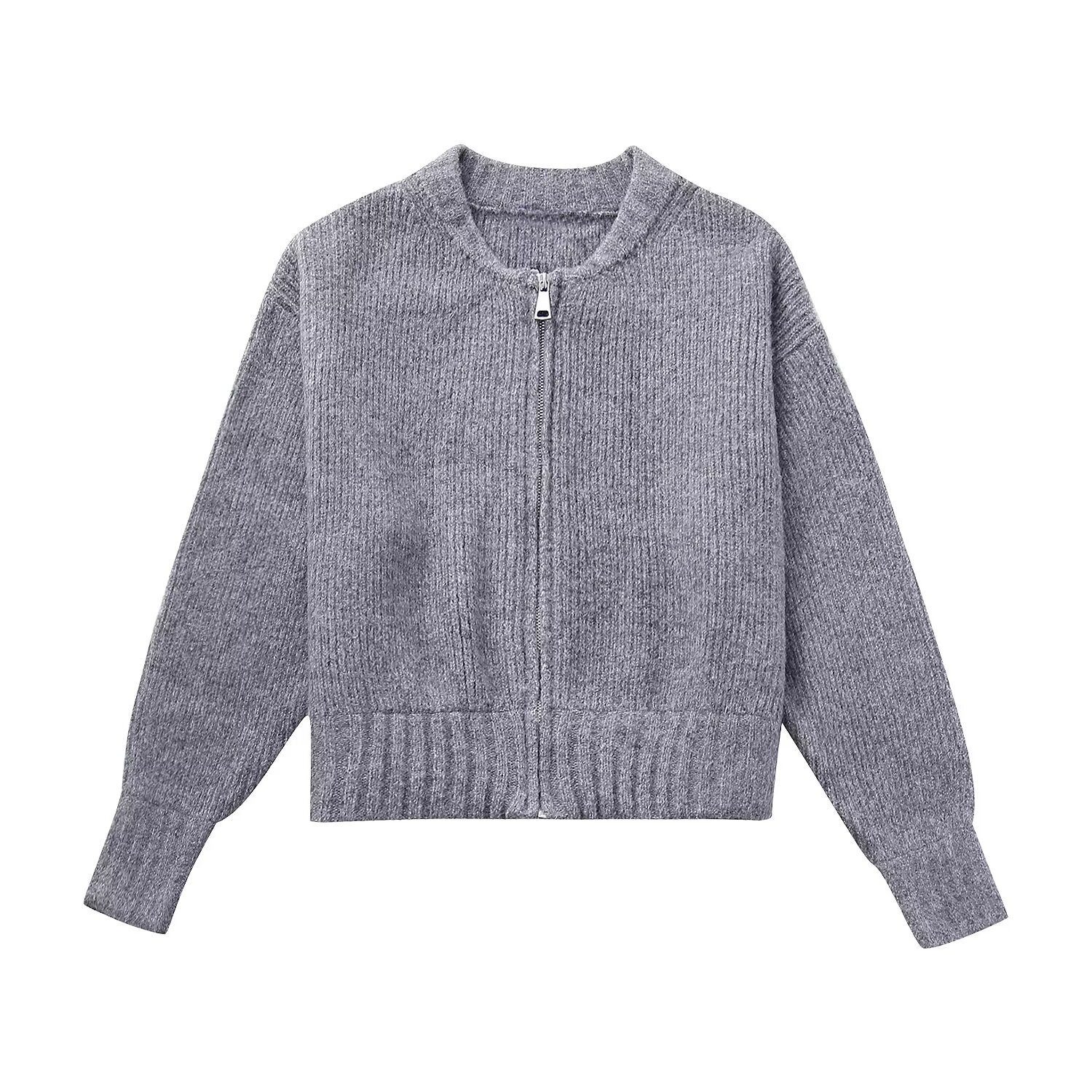 Zipper Knitted Bomber Jacket Sweater Coat
